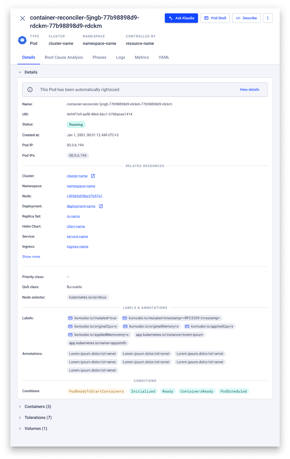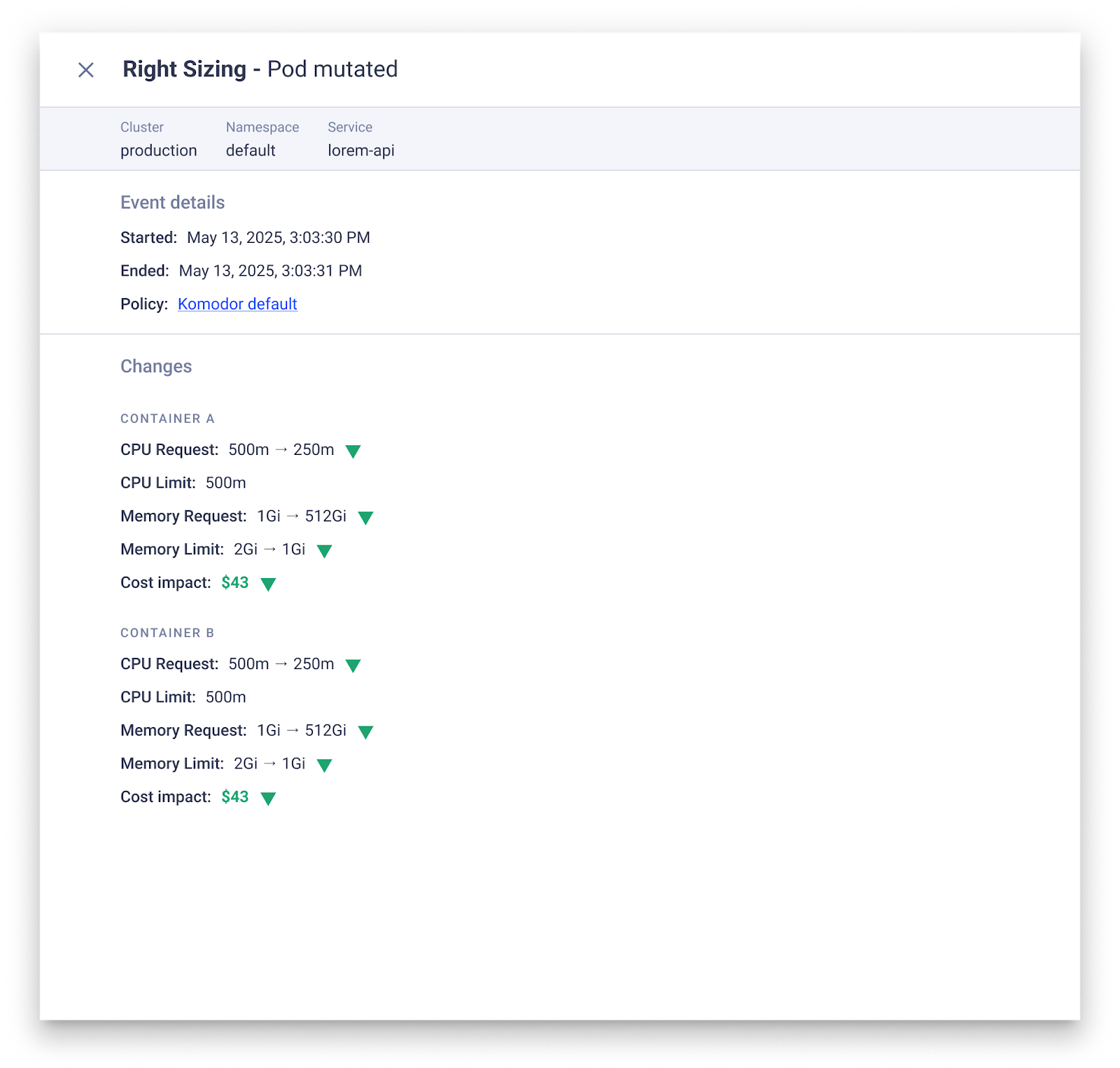 All rightsizing actions are auditable and can be tracked through the pod view itself.