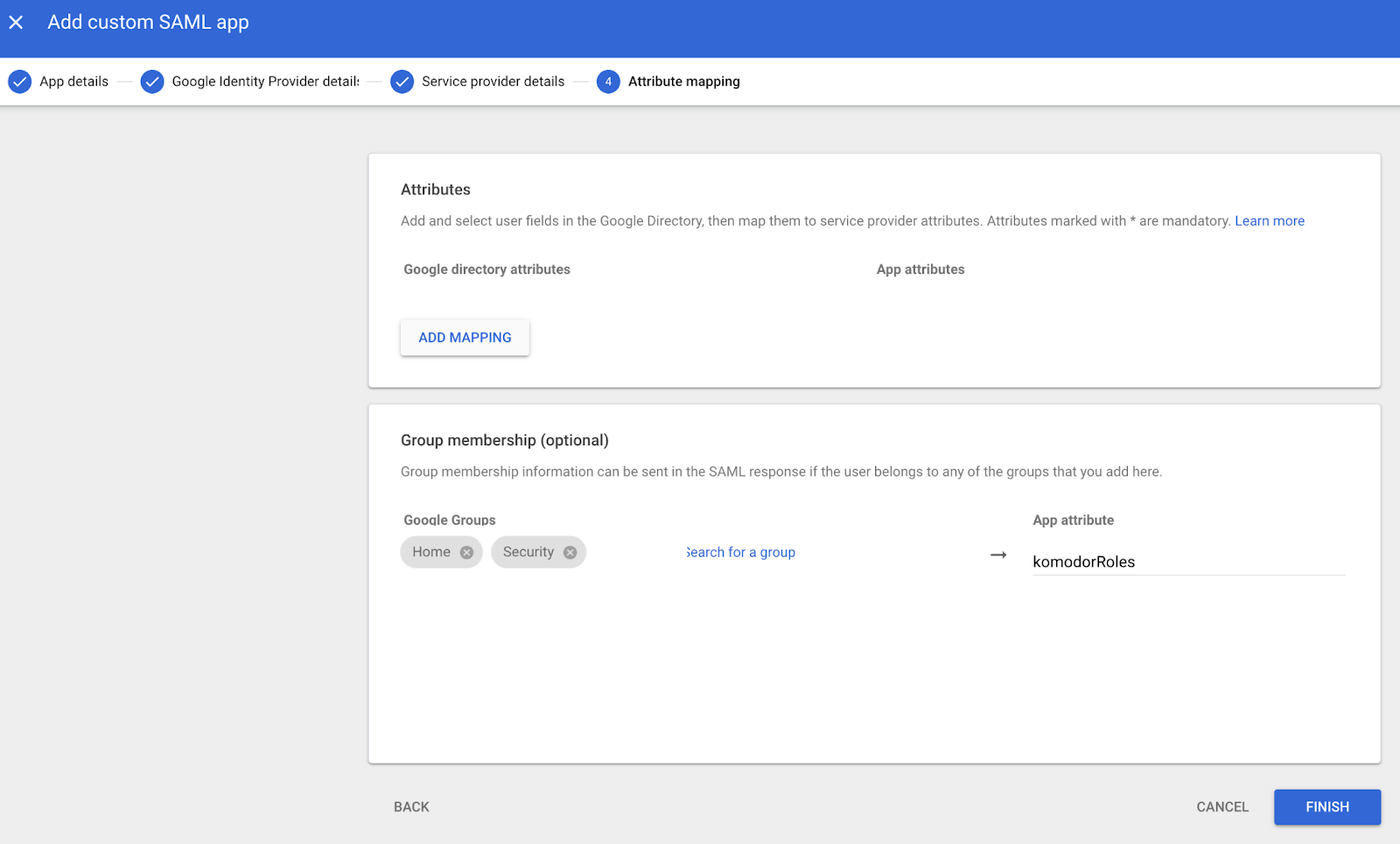 Under Group membership, add the Google Groups that you wish to have access to Komodor. Set the App attribute to komodorRoles